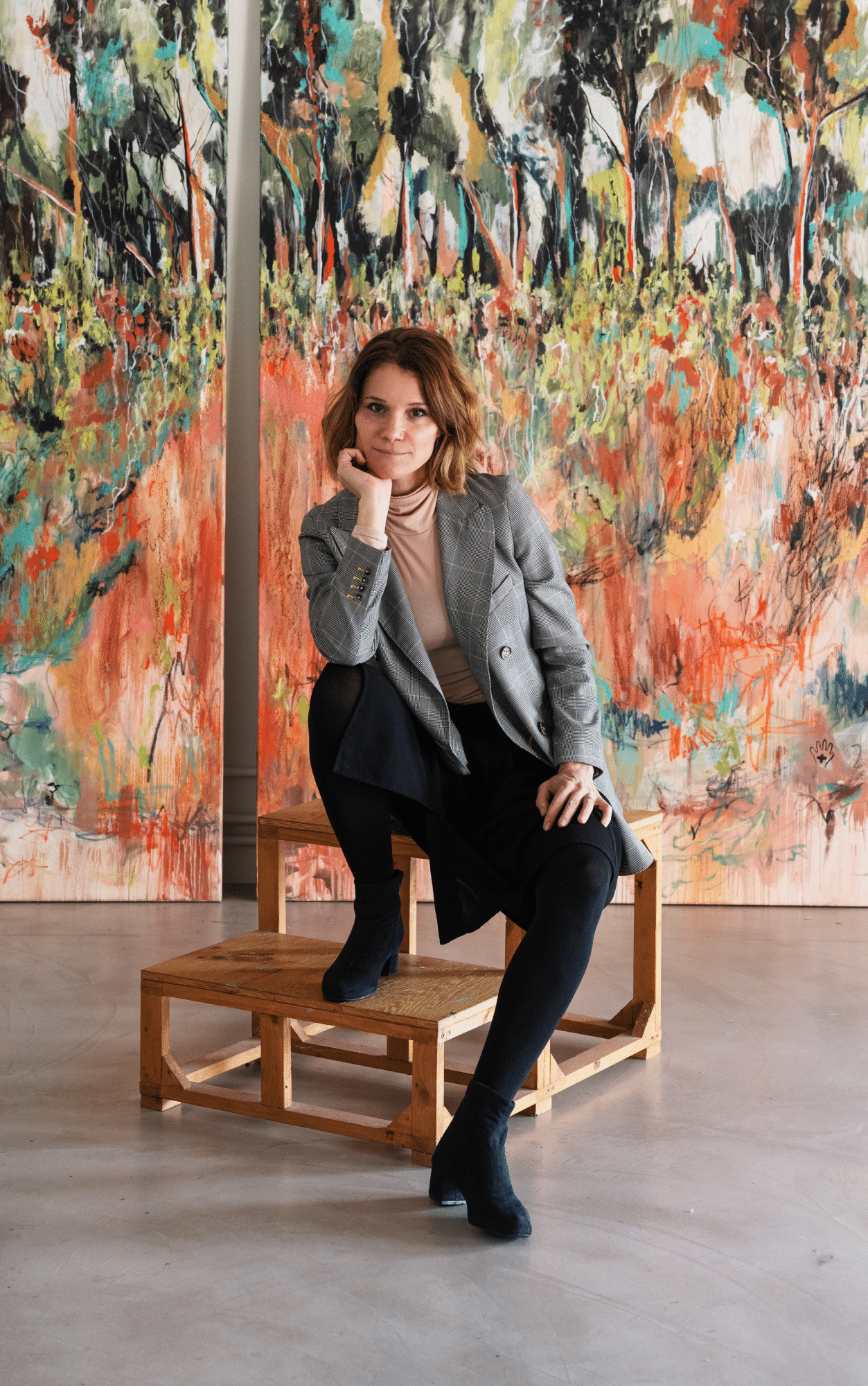 Joana Santamans (Barcelona, 1977) is a contemporary painter whose work explores the intersection between nature, the body, and lived experience. Her intuitive, gestural practice immerses itself in the organic world, where pigment and matter become a language of life. Working between Barcelona and the Empordà, she transforms her natural surroundings into a sensory and spiritual experience.