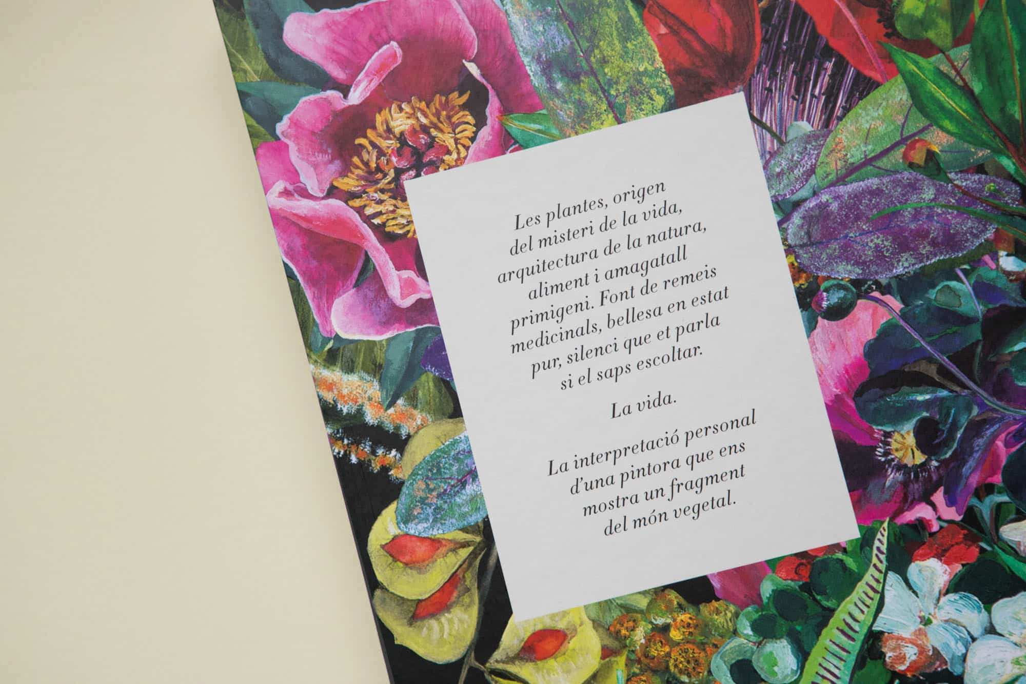 «Les plantes, origen del misteri de la vida, arquitectura de la natura, aliment i amagatall primigeni. Font de remeis medicinals, bellesa en estat pur, silenci que et parla si el saps escoltar. La vida. La interpretació personal d’una pintura que ens mostra un fragment del món vegetal.»
