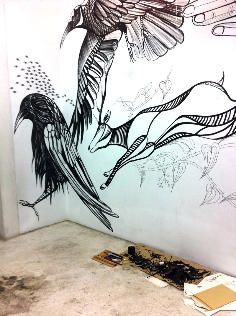 Mural intervention in the Blanco Studio showroom.