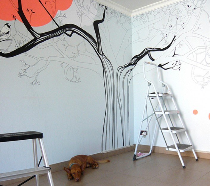 Private livingroom for a house in the village of Vallirana / Acrylic and paintmarker.