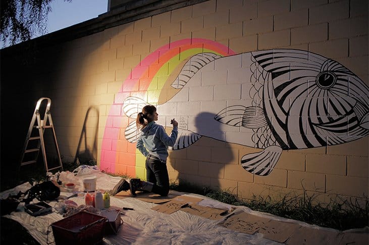 Intervention on a street wall / Barcelona and Esparreguera village / Acrylic, spray and paintmarker.